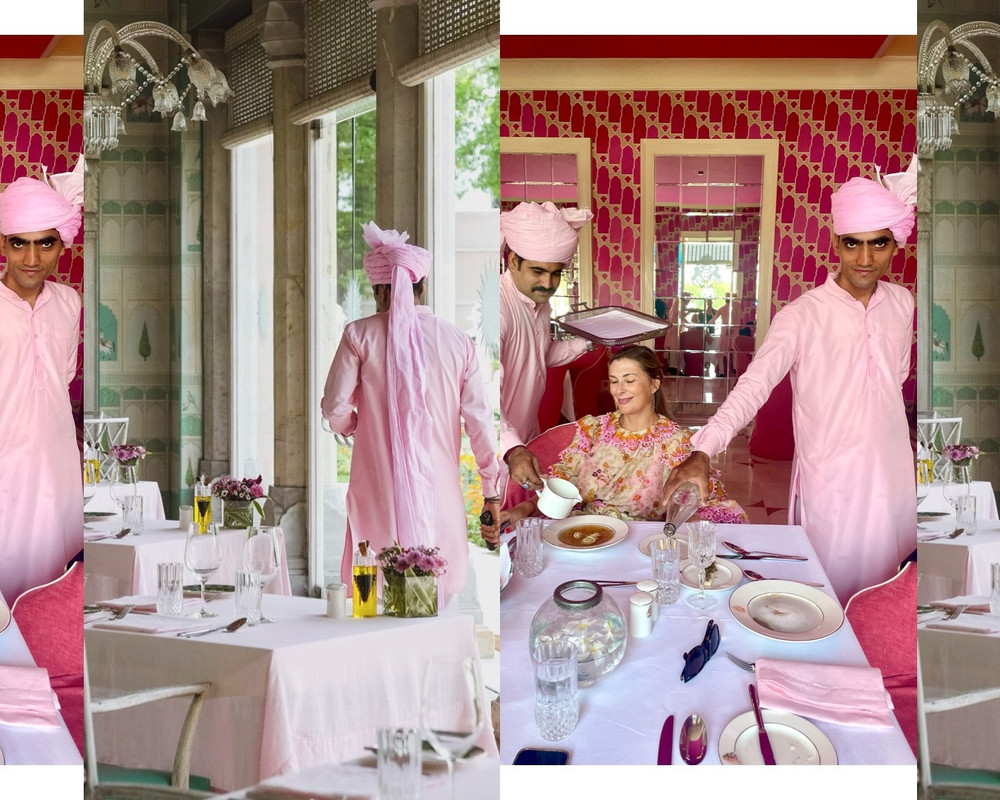 Обед в антуражном "розовом" ресторане в стиле фильмов Уэса Андерсона в RAAS RajMahal.